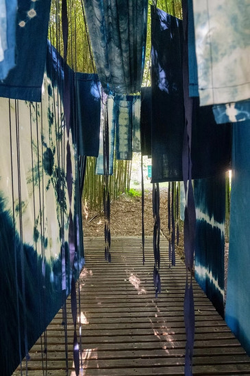 Les œuvres de Joël Dagès se révèlent comme des territoires en transformation : des étoffes que le végétal traverse, imprègne et métamorphose, jusqu’à faire du textile un paysage sensible.